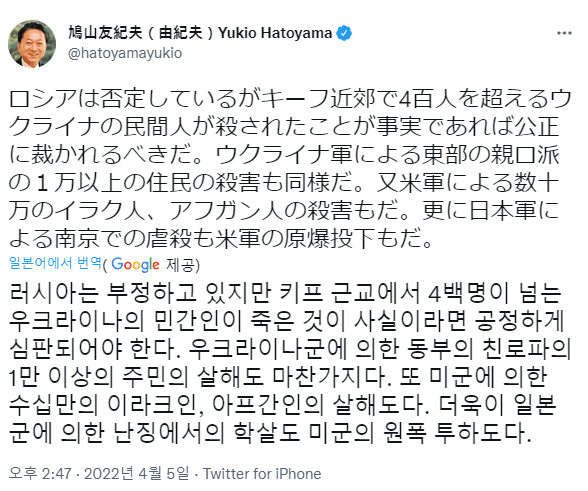 それをウクライナ政府が虐殺された遺体だって宣伝利用しているって話だろ?「ロシアは北海道の権利有する」大物議員発言が波紋