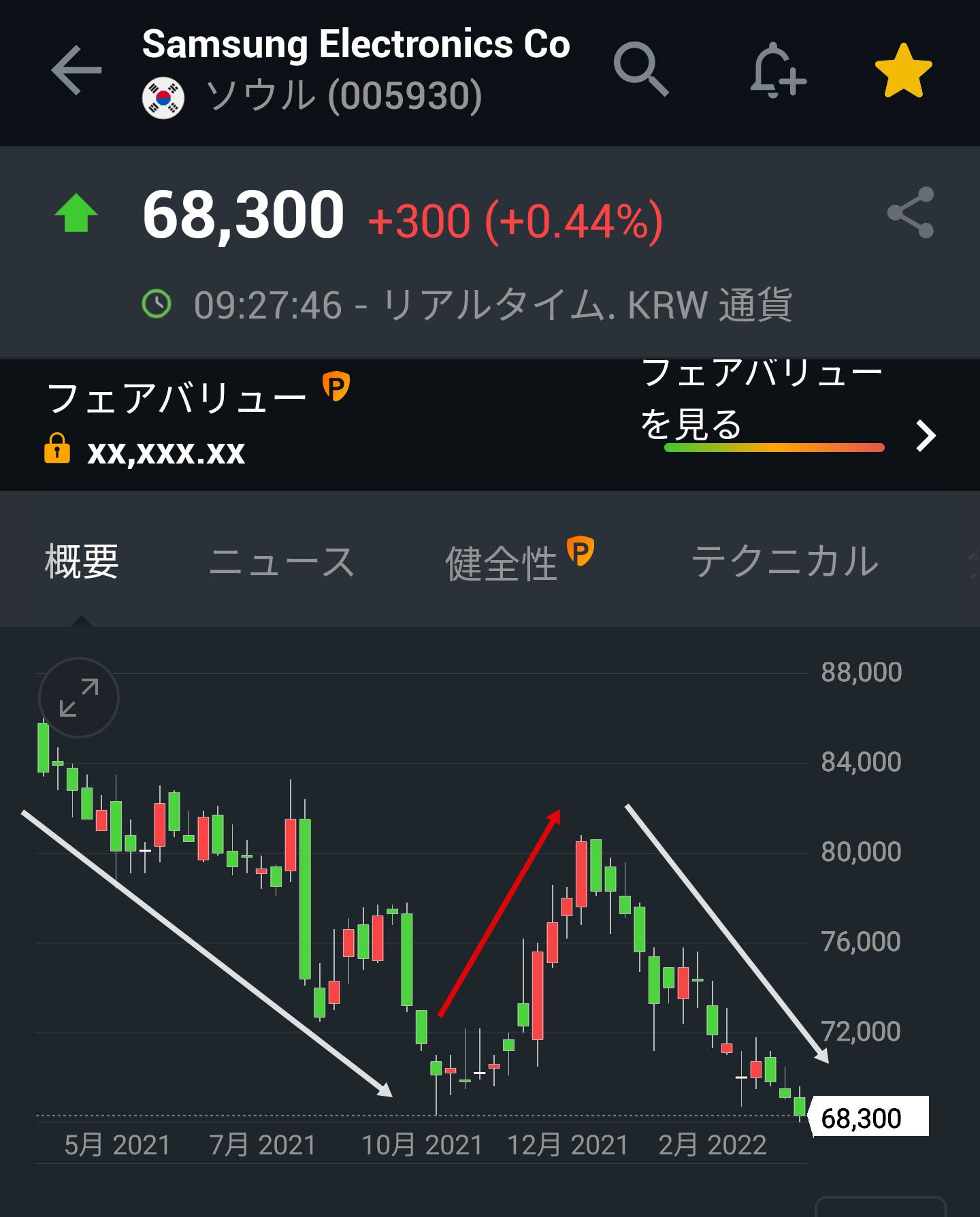 現在、サムスン電子の株価
