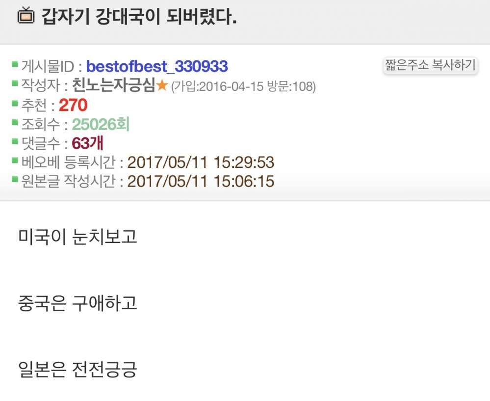 韓国はミャンマークラスの扱い。南半島は、アメリカとの同盟国と言う