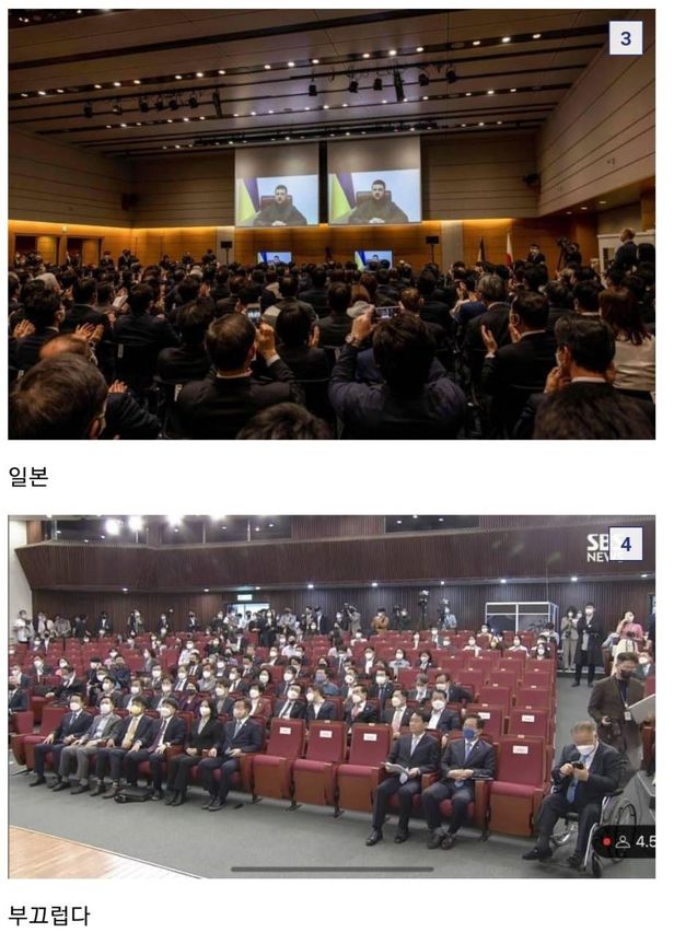 https://news.yahoo.co.jp/articles/b00c8f42b967efcf8881268762aa25266d3c2703「ゼレンスキー大統領の演説」会場満杯になった日米…やっと50人の韓国国会が恥ずかしい