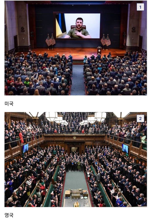 以前、ゼレンスキー大統領が米国、英国、日本など23カ国の議会で演説した際、絶え間なくスタンディングオベーションが沸き起こりました。