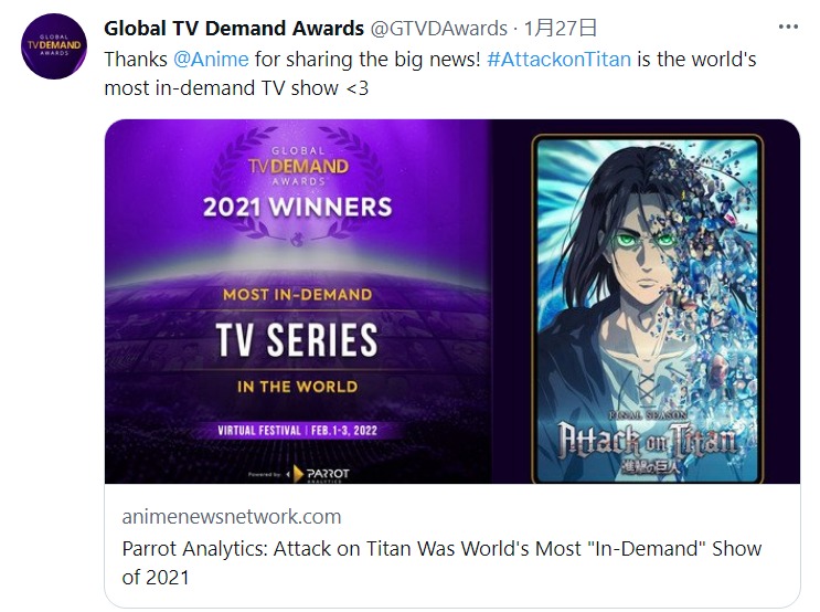 2021年、世界で最も需要の高かったTV番組↓朝鮮人は日本の文化を圧倒したとムン・ジェイン含め豪語しているけど、馬鹿だよねほんと