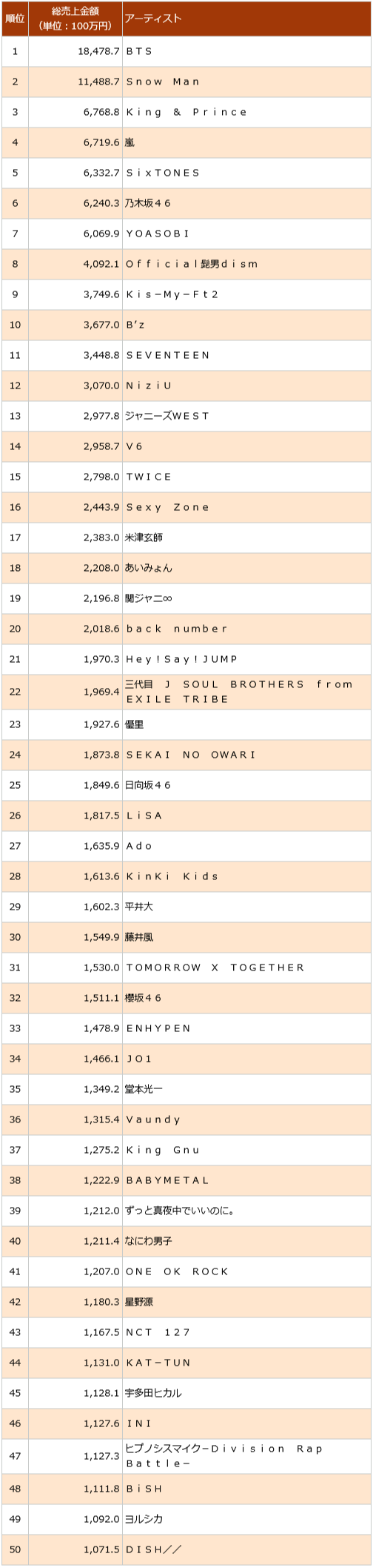 で、BTSが一番売り上げているのが日本というのであれば、日本の市場がとてつもなくでかいので売り上げはでるが、でかい市場の中ではゴミみたいなものって解釈にしかならんのよ