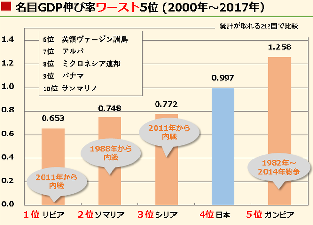 일본의 작년 실질경제성장률은 1.7%에 그쳐 유럽이나 미국 등의 회복세를 따라가지 못했다. 이와 함께 전자를 비롯한 일부 산업에서 일본 기업들이 한국·중국 등에 밀리며 경쟁력을 잃어가는 것 등도 영향을 미친 것으로 보인다.
