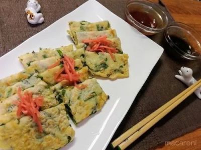 *전(煎) – 얇게 만들어 기름에 지지는 음식 (지지다 = 炒める)