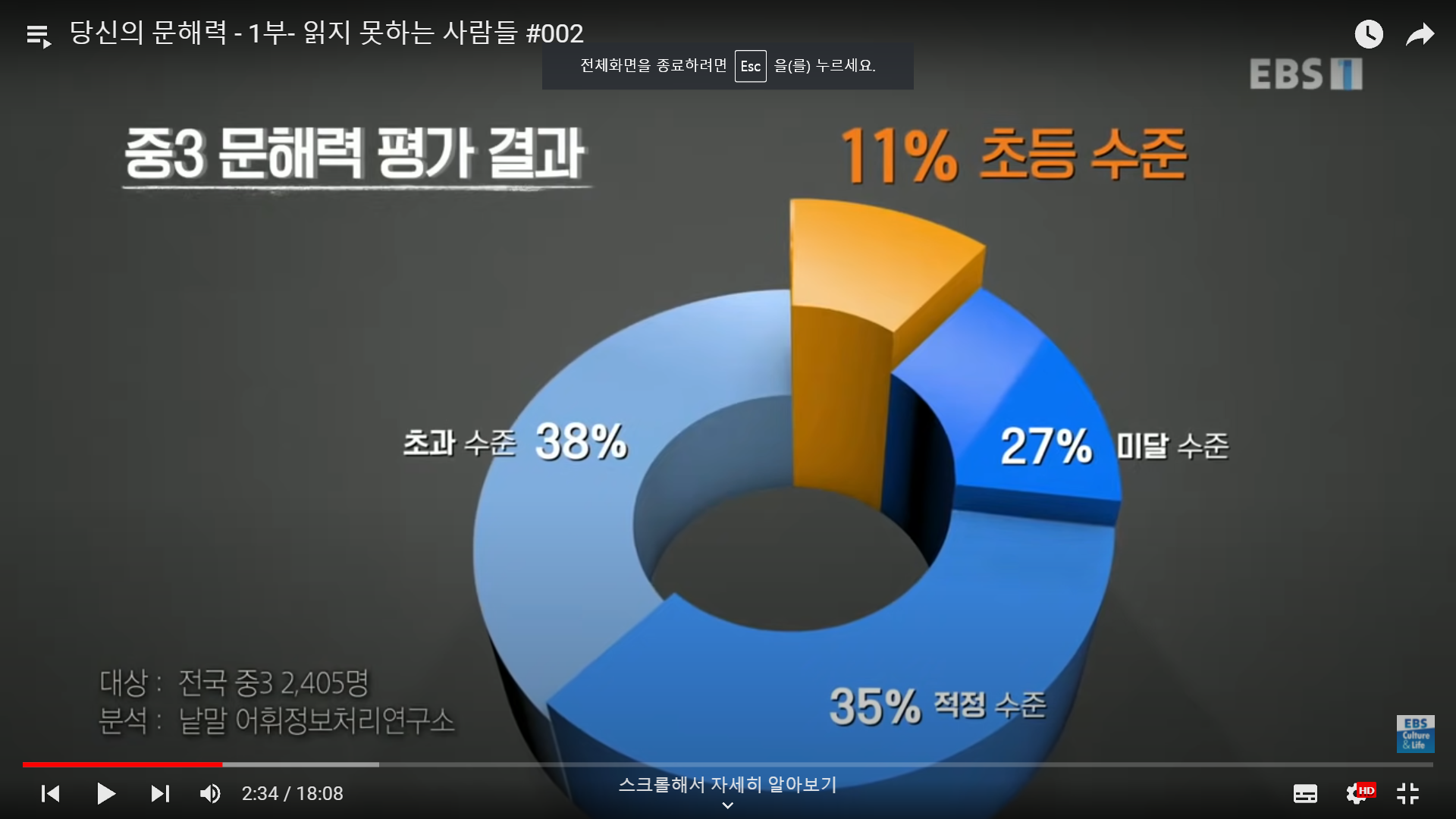 3. 중학교 3학년 문해력 평가 결과, 27%의 학생이 수준 미달... (대상: 전국 중3 2,405명)