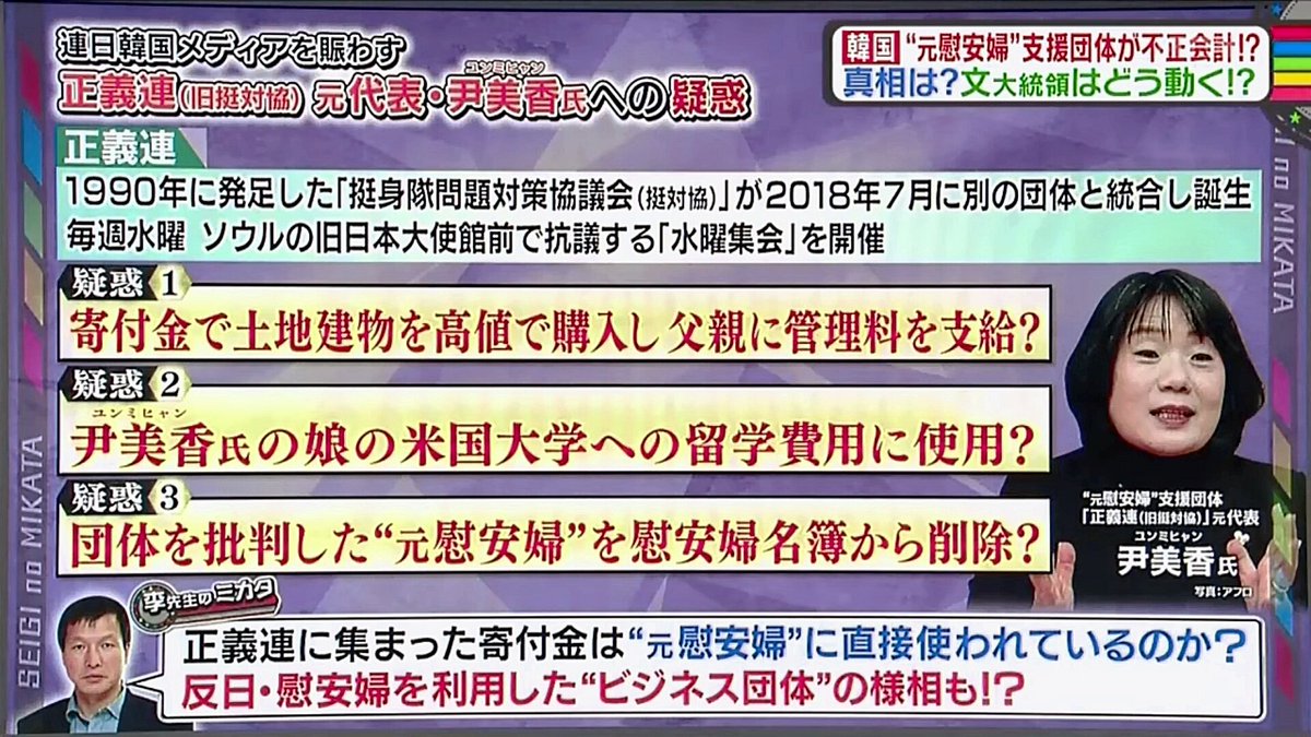 双方は告訴・告発戦も行っている。3月に旧日本軍性的奴隷被害者団体側と李容洙(イ・ヨンス)さんは自由連帯のキム・サンジン事務総長らを集会とデモに関する法律違反などの容疑で告訴・告発し、告訴人調査が行われた。これに対し反水曜集会側は正義連関係者らを相互に告訴した状況だ。