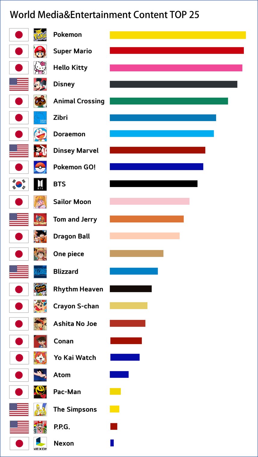 だけど、韓国の《政治エンターテイメント》は大好き日本のエンタメ業界は世界の売り上げは現在も上昇中だが、反日で洗脳された韓国人は数字に弱すぎる。洗脳を克服して数字が理解できれば、日本併合時代が朝鮮半島が人口や経済が最も発展した時代だったという歴史的な事実も理解できるようになると思う。
