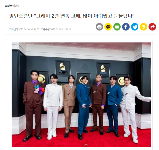 防弾少年団「グラミー賞2年連続の苦杯、すごく残念だったし涙が出た」