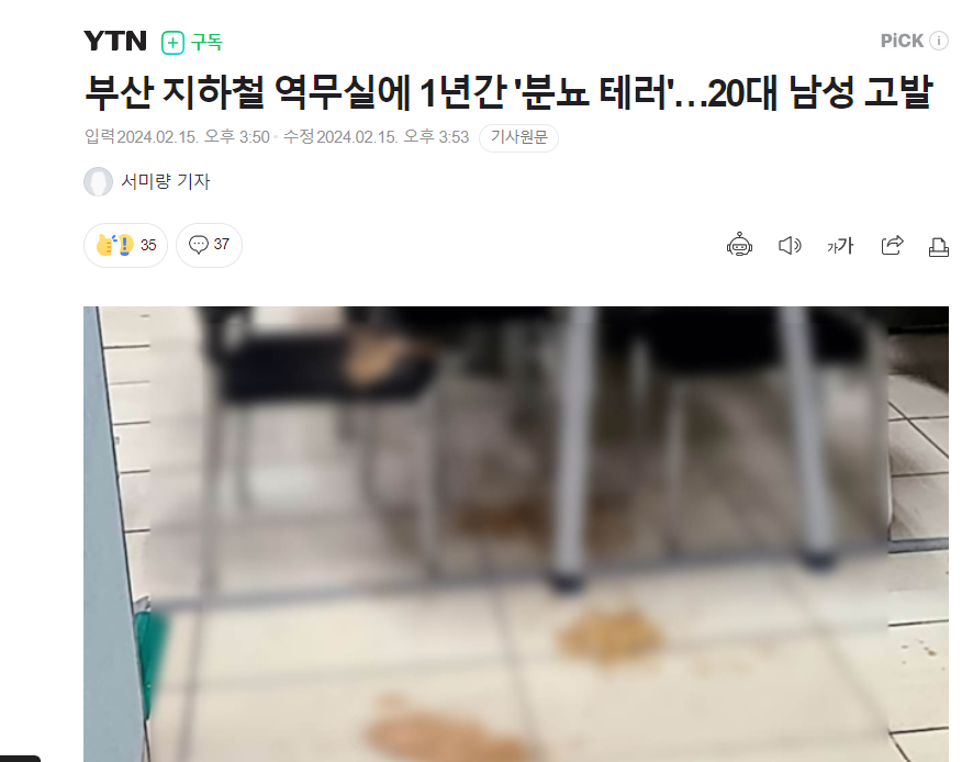 釜山地下鉄の駅務室に1年間「糞尿テロ」···20代男性告発
