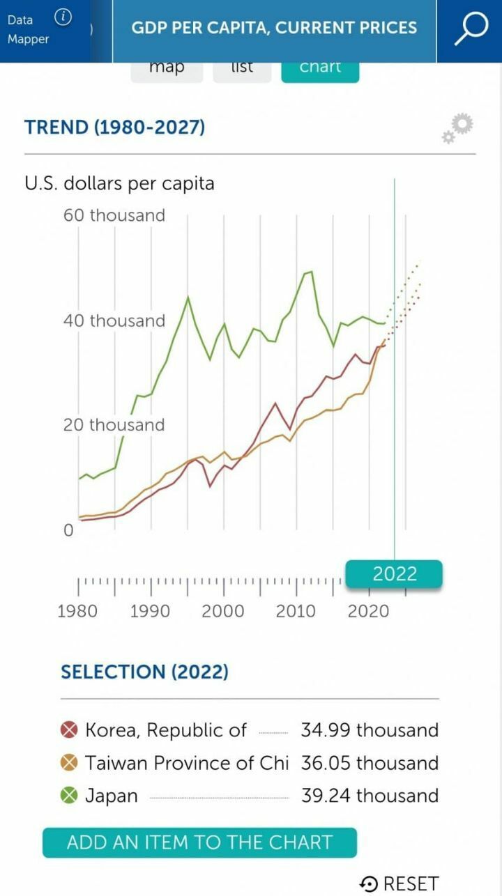 韓国は、衰退していくので、もう抜かれることはないでしょうね