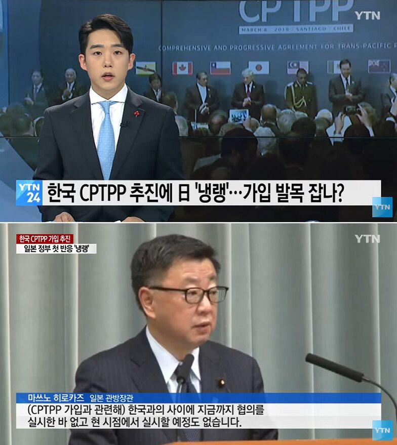일본 정부가 징용배상 소송의 대응조치로 한국이 포괄적·점진적 환태평양경제동반자협정(CPTPP)에 신규가입을 희망하면 이를 거부하는 방안을 검토한다는 언론 보도가 나왔습니다.