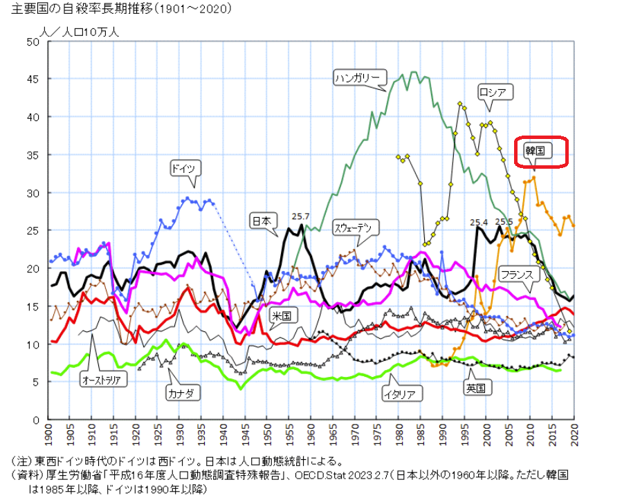 韓国の出生率と自殺率を見ろよ。20年前よりはるかにヤベーだろ。