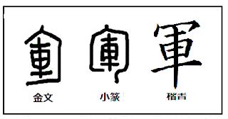 「軍」は会意文字で車が周りを取り囲む、軍の本義は兵営とその周囲の壁、陣営である。>>57