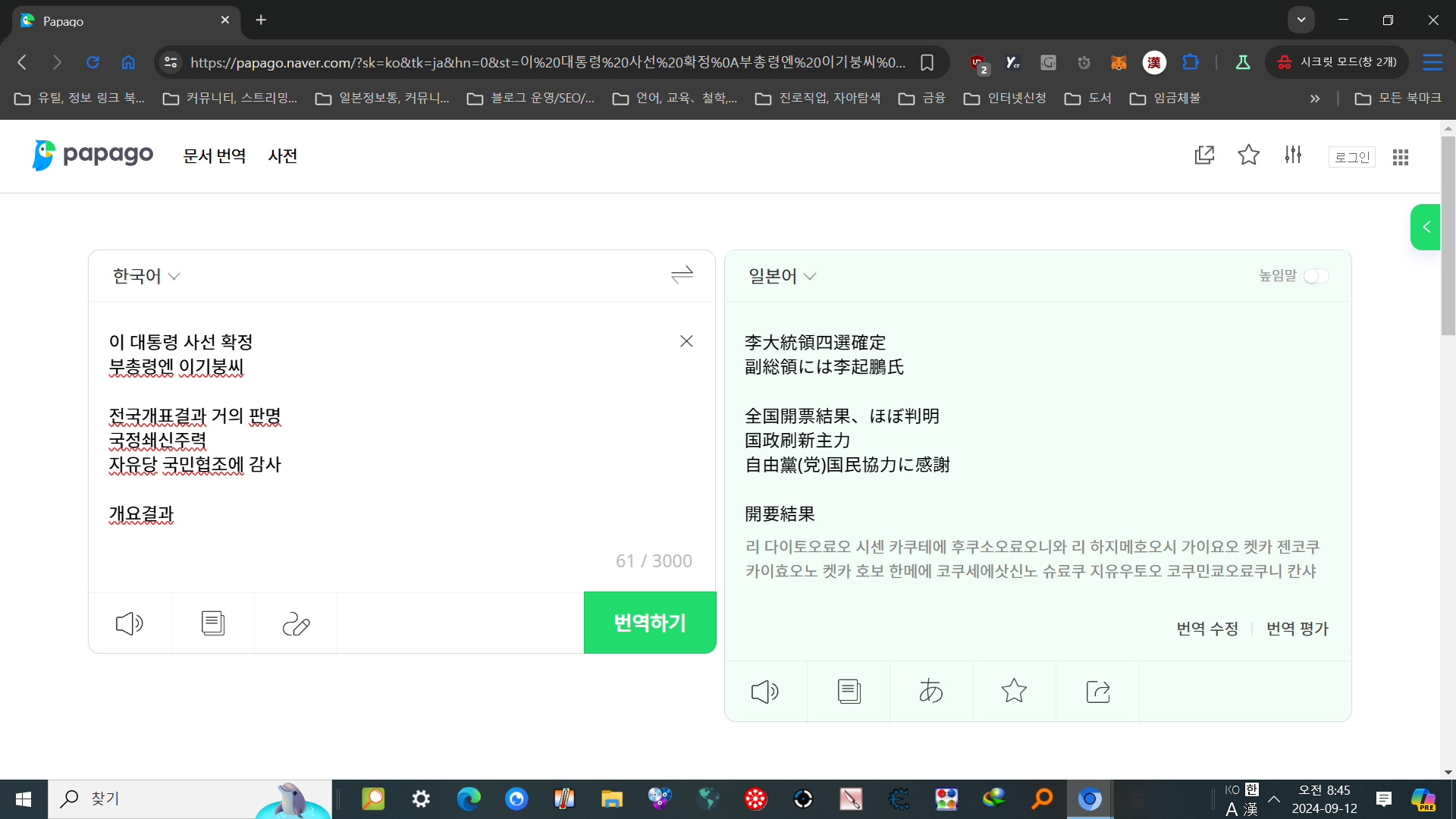한국어화자의 경우, 원활한 소통(높은 번역률)을 원하신다면