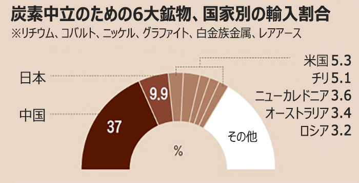 韓国は炭素中立に必要な6大鉱物の60%ほどを中国など5カ国に依存している。6大鉱物(リチウム、ニッケル、コバルト、黒鉛〈グラファイト〉、レアアース、白金族金属)は、電気自動車のバッテリーや新再生エネルギーの拡大に欠かせない鉱物だが、グラファイトを除けば国内自給率は0%で、全量輸入に依存している状態だ。