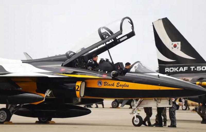 앞서 지난 2월 12일 오전 한국 공군 특수비행팀 블랙이글스가 대만 가오슝시 샤오강 국제공항에 기착했다.