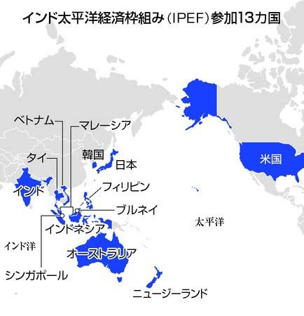 https://www.sankei.com/article/20220522-FQ54EQTWDVMBXLQZNTFSZKBDPQ/米主導IPEF、13カ国で発足 経済安保で「脱中国」―日本も参加