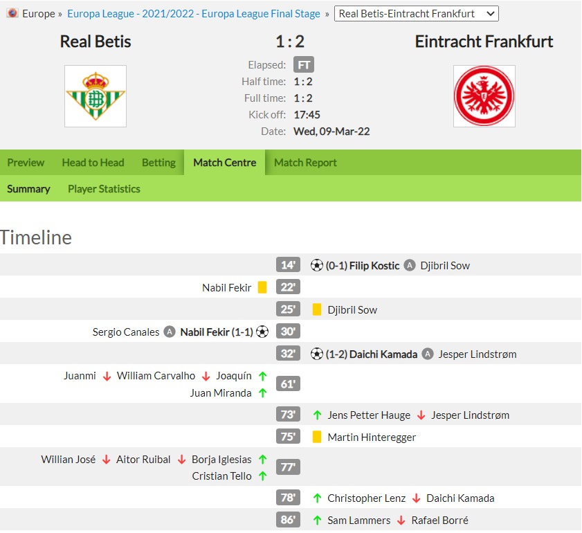 ・決勝トーナメント以降の対戦相手:ベティス、バルセロナ、ウェストハム、レンジャーズ