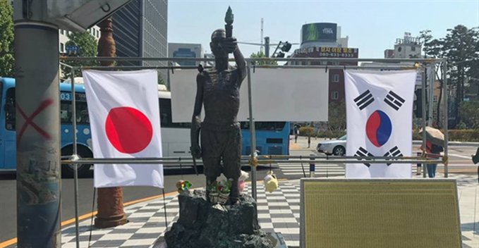 2022年5月18日、韓国・オーマイニュースによると、釜山市にある日本植民地時代に徴用された労働者を象徴する像の後ろに日の丸が設置され、物議を醸している。先月には像の前で慰安婦少女像の撤去を求めるデモも行われていた。