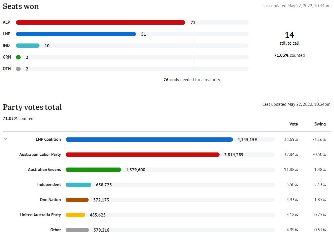 オーストラリア総選挙、野党・労働党が勝利の見通し…9年ぶり政権交代へ