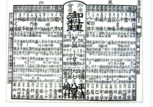 江戸時代に作られた料理屋さんのランキング 「即席會席 御料理」1859年
