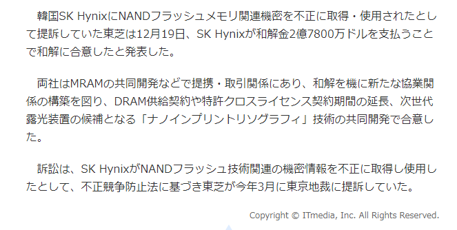 韓国企業との提携は信用してはいけない。常に裏切りを想定しなければならないってことだ。特許契約違反に関して、韓国企業は意図的に違反を繰り返すのが当たり前の状態