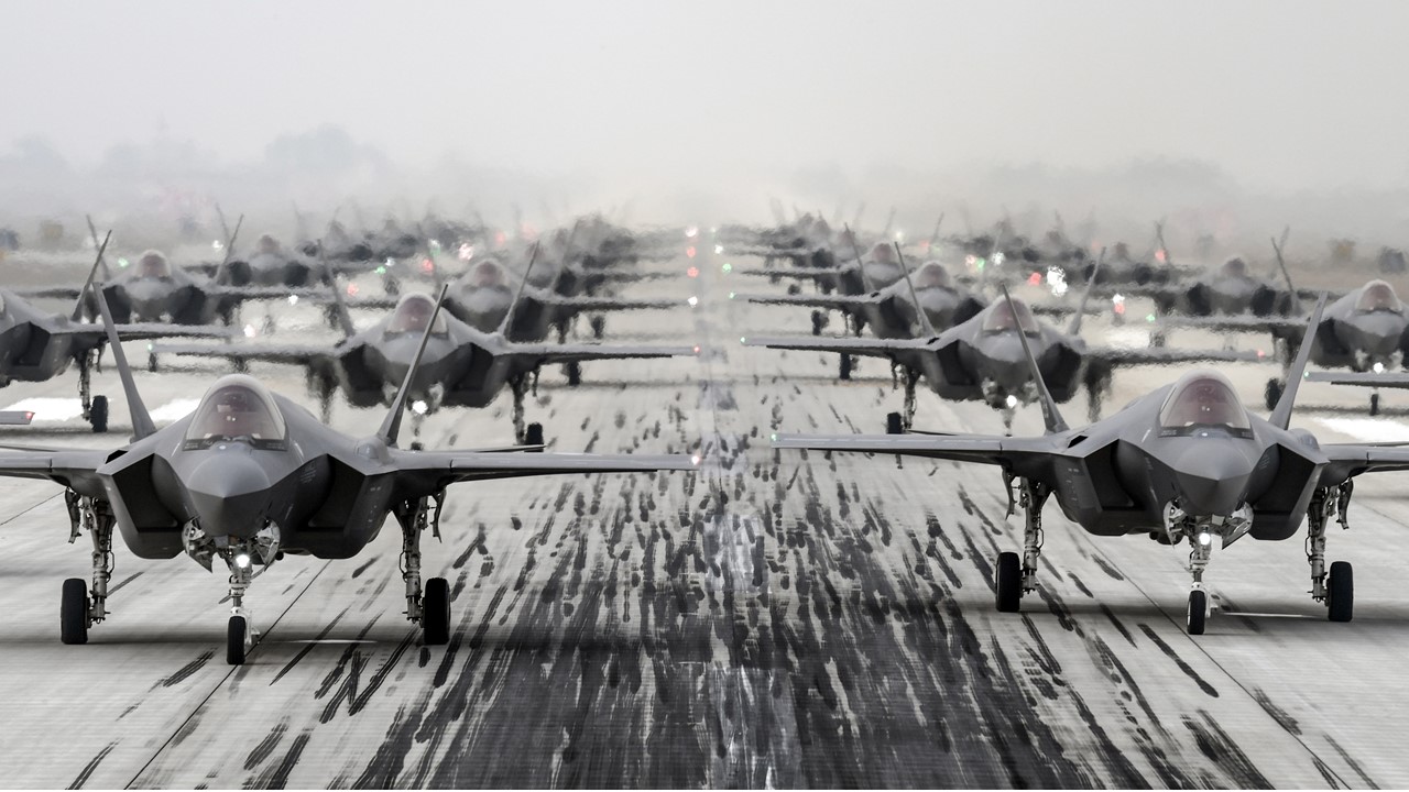 北朝鮮の大陸間弾道ミサイル(ICBM)発射に対応して、韓国空軍のF35Aステルス戦闘機28機が一度に滑走路に並んで移動する「エレファントウォーク(Elephant Walk)」訓練が25日に行われた。>>1