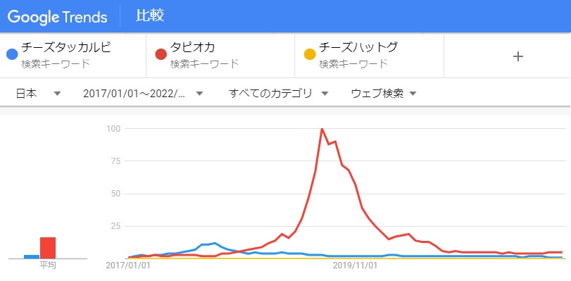 (グラフ参照:青ーチーズタッカルビ、赤ータピオカ、黄色ーチーズハットグ)