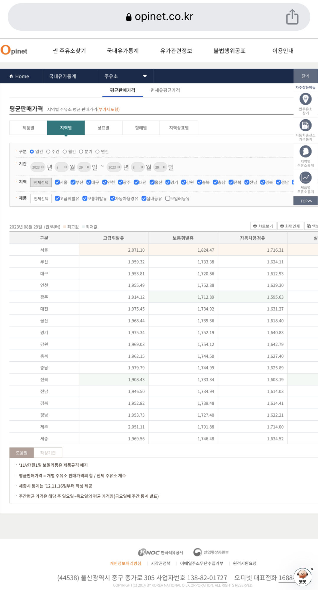 https://www.opinet.co.kr/user/dopospdrg/dopOsPdrgAreaView.do日本は先進国の中じゃ一番変動幅が少ないんじゃかなったかな(´・ω・`)