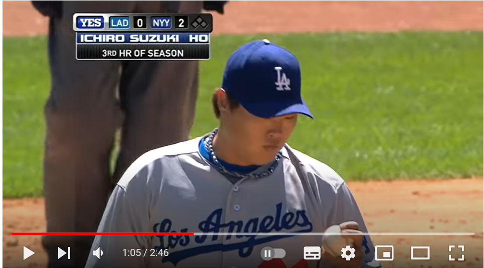 ★リュ・ヒョンジン vs イチロー イチローに本塁打を打たれる…0:55秒~◀︎ホームラン