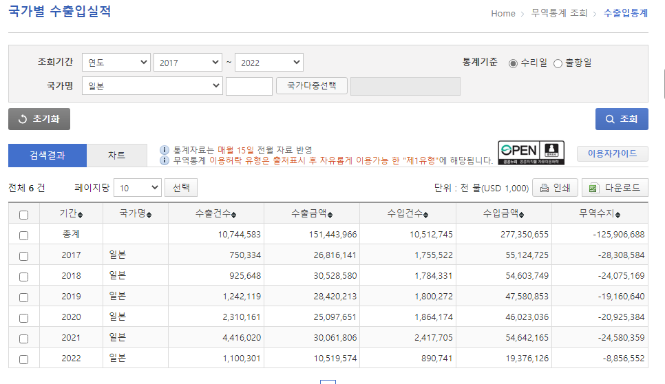 🤣😂⤵2017-2022年の期間の対日貿易収支は次のとおりです。単位:千ドル(USD1,000)