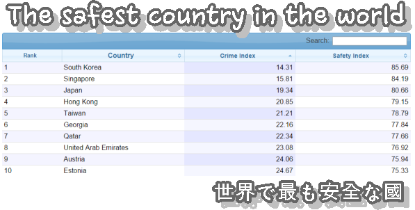 대한 민국은 세계 최고의 치안이 잘 되어 있는 국가이다.