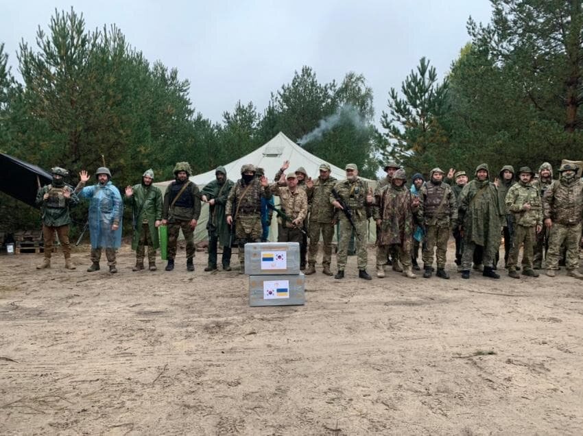 한국 기업이 지원한 고글을 받고 감사하는 우크라이나 군인>>967