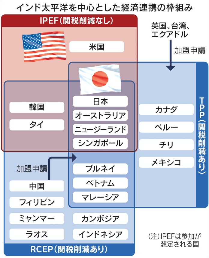 こうした状況で韓国は23日に発足したインド太平洋経済枠組み(IPEF)に参加した。韓国のIPEF参加は中国を孤立させようとする米国主導の供給網秩序に韓国が参加することを選択したとの見方がある。王毅中国外相が韓国と日本の外相とのオンライン会談で両国のIPEF参加に強く反対し、「米国のインド太平洋戦略は中国を包囲しようとする試み」と反発したのはこうした見方からだ。