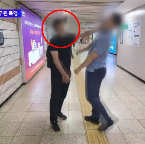 2日、JTBCの報道によると、先月31日、ソウル地下鉄クロ(九老)駅で、ある男性A氏が駅員に悪口を言い、彼を殴った姿が捉えられた。駅員が地下鉄駅の待合室でキックボードに乗るのを止めると、A氏は「このクソ野郎。どけよ」などと言って駅員のあごを押した。