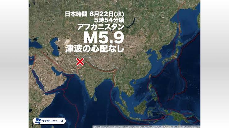 米地質調査所(USGS)によれば、震源はパキスタン国境に近いアフガン東部ホストから約44キロ離れた地点で、地震の規模を示すマグニチュード(M)は5.9。一方、欧州地中海地震学センター(EMSC)はM6.1と発表した。