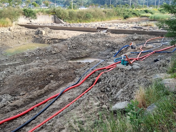 去る5月27日金曜日、全羅南道高興で25年目米農業を作っている神経男さんは「農業を始めた後5月にこんなに雨が降らない初めて」と数枚の写真を送ってきた。農民たちが4km外の水を引き込むために40mのホース100個をつなぎ、すでに乾いた河川にフォークレーンを動員して水たまりを掘って多少の水を確保した現場写真だった。まさに「影(魂まで引き寄せて)」して作り出した水だった