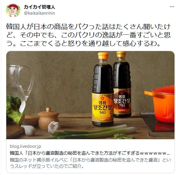 いろいろパクって今の朝鮮人がある。調味料までパクる朝鮮人WWWwwwwww