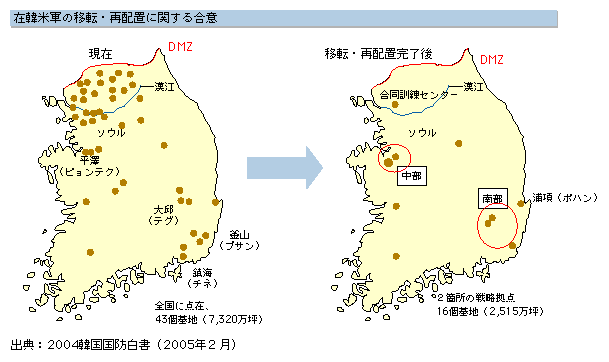 ※ 機甲化師団の兵士は平沢市のハンフリーズ陸軍基地、戦車はソウル以北の基地にデポ、補給品は最小限に減らした=イラク作戦時に、かつ、9月のローテでアメリカ本土の兵士と交代するから、基本、なにもできない(米韓合同訓練が無い現状では)