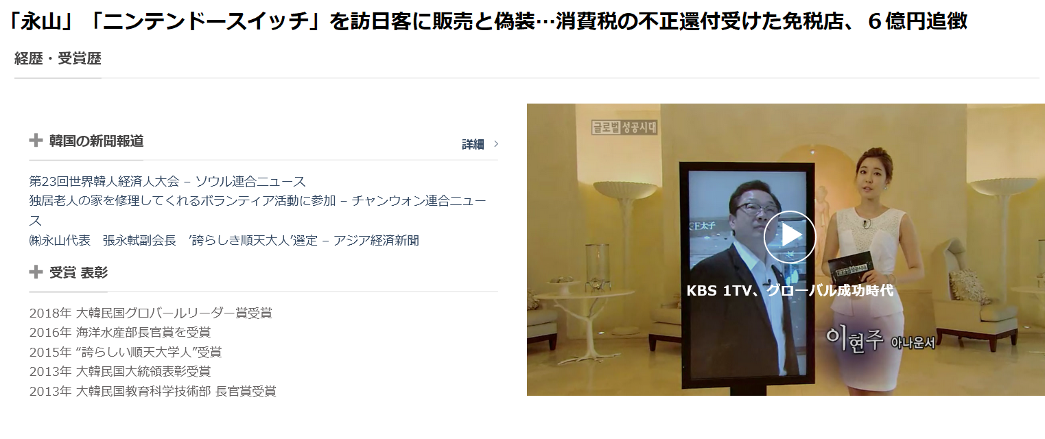 関係者によると、永山は国内約30か所で免税店や韓国食材を扱うスーパーなどを展開。中国などからの訪日客に、任天堂が17年に発売したニンテンドースイッチやデジタルカメラ、金工芸品などを免税販売したとして、21年3月までの5年間に消費税数億円の還付を税務署に申告し、一部の還付を受けていた。