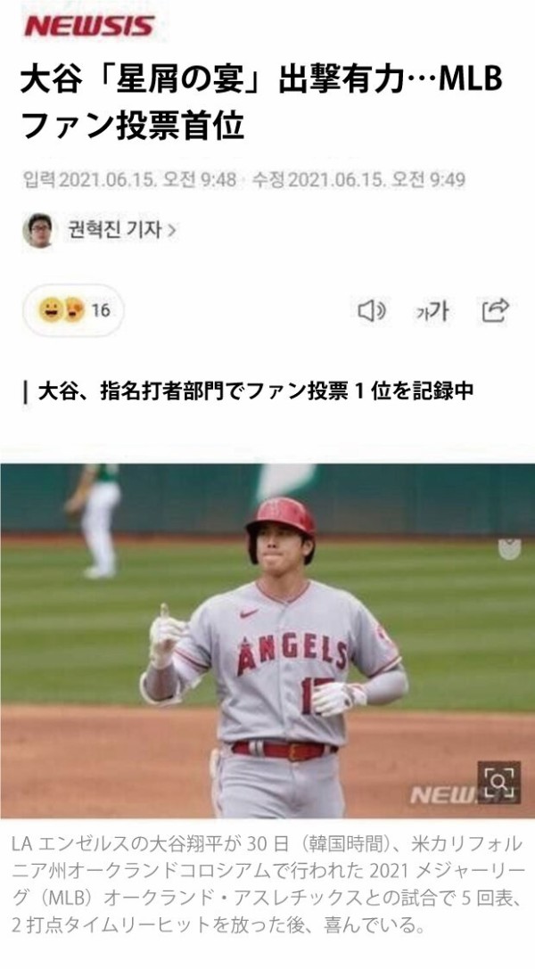 この記事を読むと いかにも大谷選手が日韓戦に関心を持ってるように感じるじゃん?