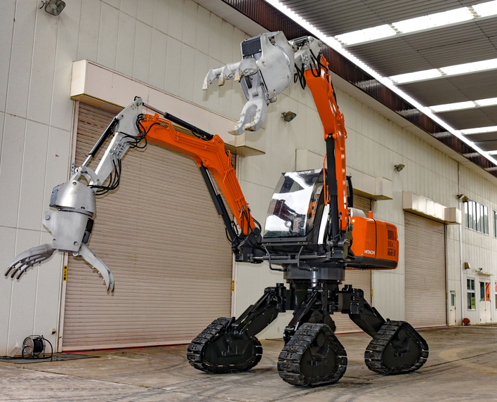 ロボットは人と同様にさまざまな部品を把持することが可能で、多様な状況の作業に対応できる。操縦者は地上の車両操縦席から操作するため、安全性が高い。