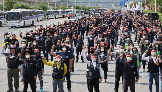 流通基地をふさぐ貨物連帯、鉄鋼・セメント・焼酎の出荷に支障=韓国