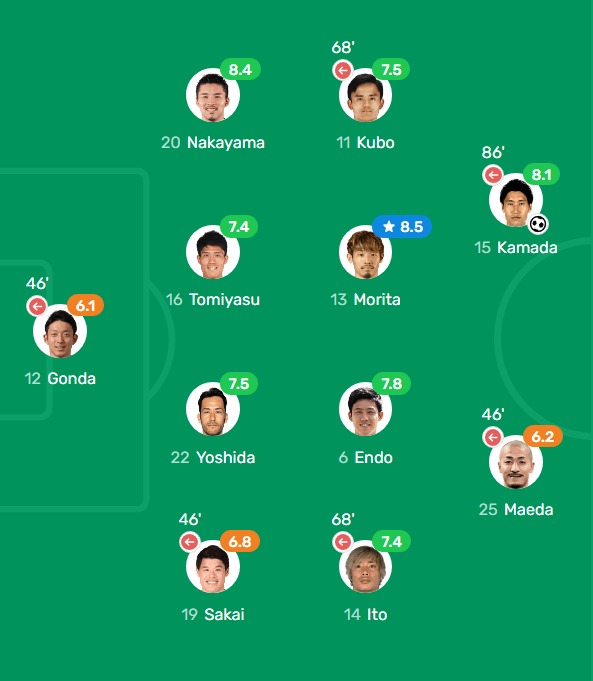 いつもだったら守田なり遠藤なり撃ってるんだが、やはり中盤が機能してなかったからだろうかね。まぁ今回のメンバー構成で、いろいろ判断するのは、かわいそうではあるね