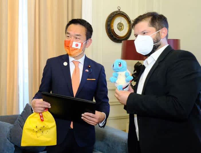 チリの次期大統領に日本の外務副大臣がプレゼントが確認出来たニュースだった。