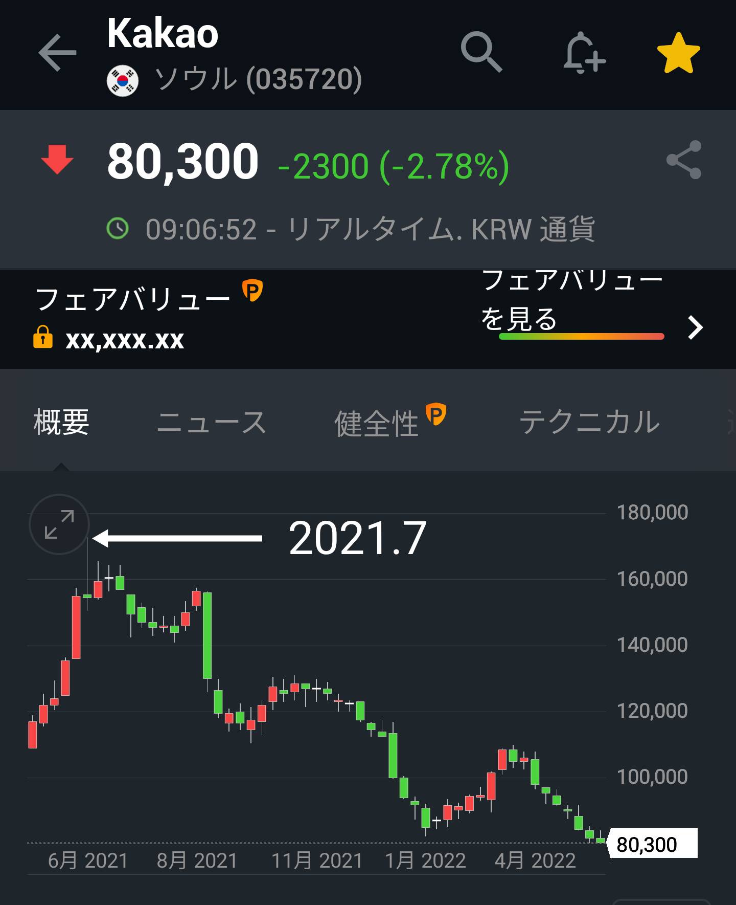 今年の年初は8万ウォン超え、それが秋頃には5万ウォン前半まで暴落予定