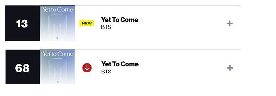 22年 BTS「Yet to Come」、ビルボード100で初週13位、2週目68位、3週目圏外
