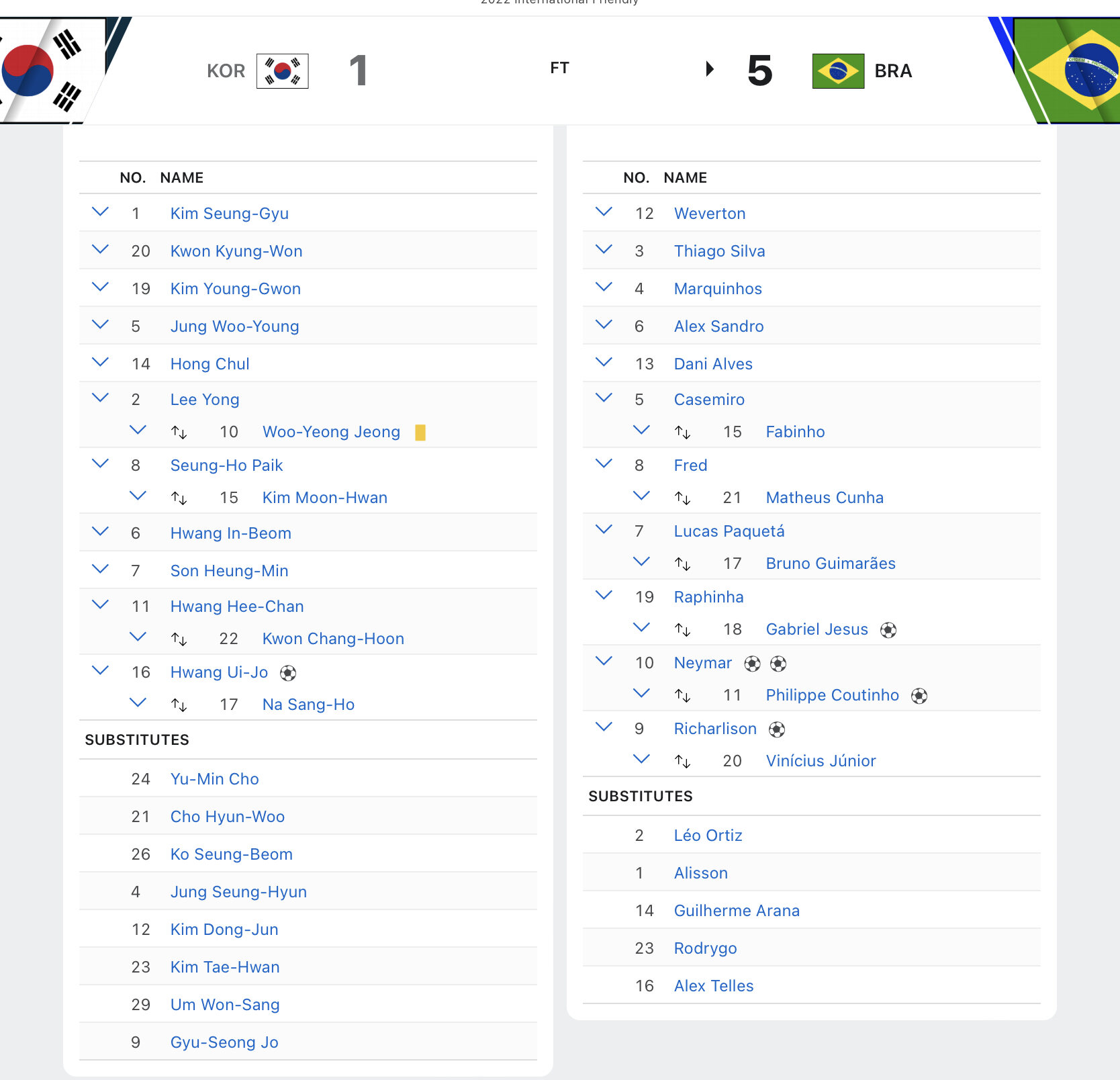 朝鮮人、弱い。wwガーナ戦を2.5軍と馬鹿にしてるのに、韓国戦のブラジル代表は二軍で、日本戦のブラジル代表は、ほぼフル出場のネイマール、チャンピオンズリーグ帰りの主力が出た、一軍だった事は絶対に言わないのな。