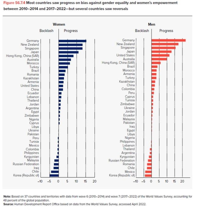 一方、ドイツ、ニュージーランド、シンガポール、日本などは性平等認識が大幅に改善されたことが分かった。
